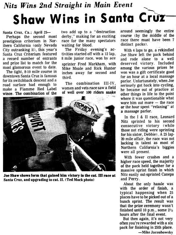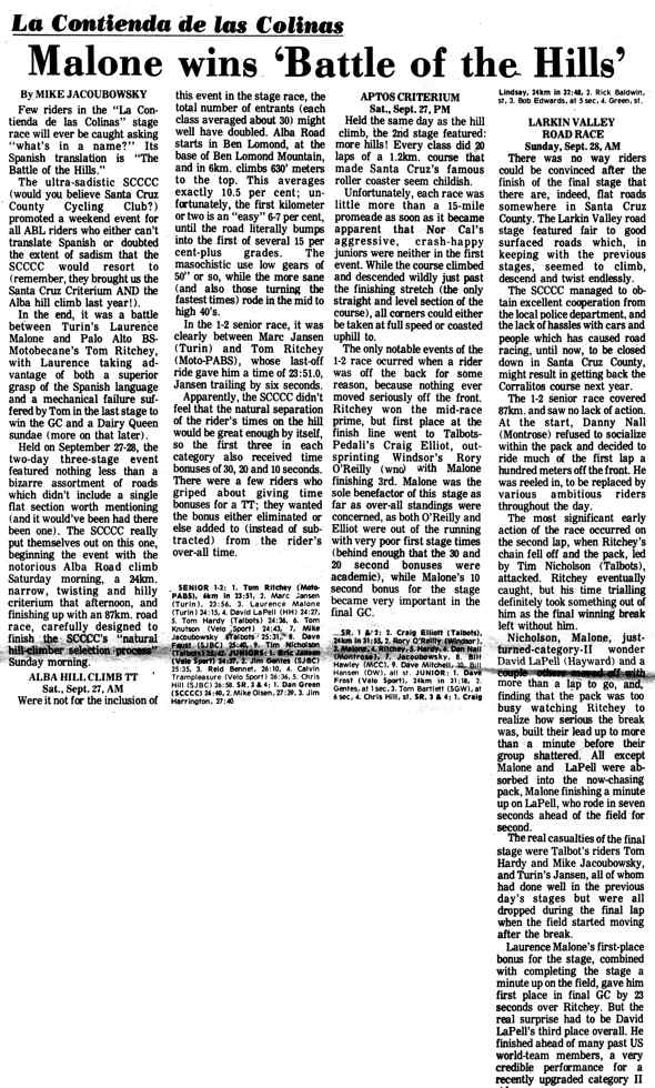 brought us the Santa Cruz Criterium AND the Alba hill climb last