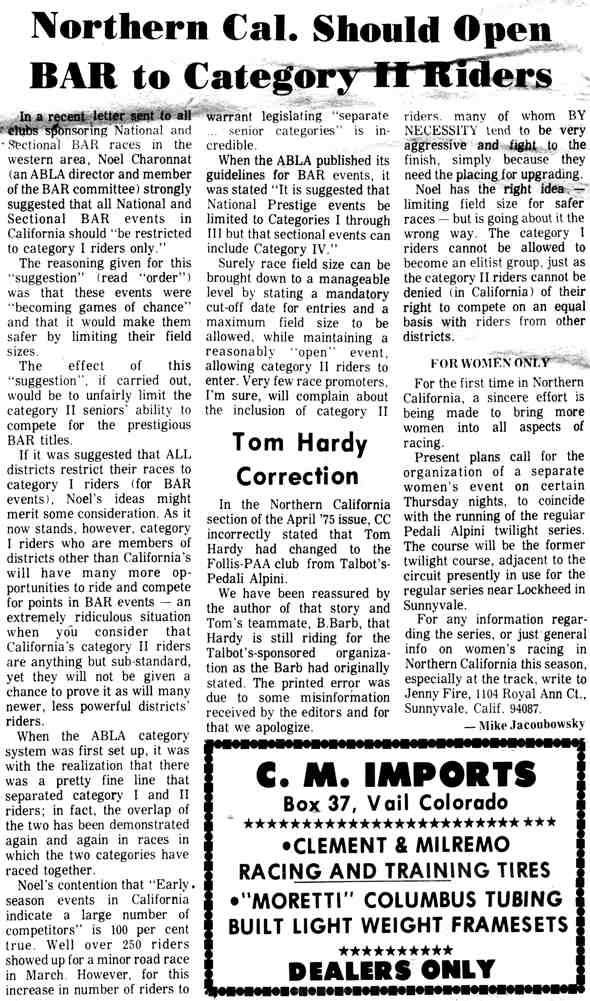 From May 1975 Competitive Cycling-
