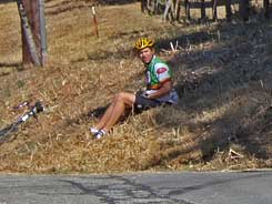 My guess is that he hit that infernal berm that separates the bike