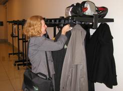 Emmons (above left) of Bikeworld in Kentucky, hanging up her coat.