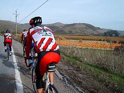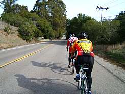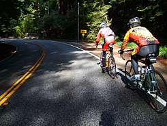 LaHonda towards 84, a couple of team-clad cyclists pass in the other
