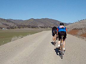 ![]() Tour of the Unknown Valley, a beautiful, but physically taxing ride in the upper Sacramento Valley. Notable for a near-complete lack of cars and, at many times, pavement as well, this is not a ride to do on your skinniest tires! Yes, that's a gravel road in the picture on the left...one of many. It's part of the Chico Velo early century series; we rode it on March 7, 1999. |