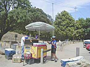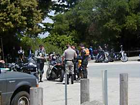 the hot dog stand, while a ticked-off motorcycle CHP officer is