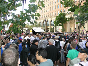 Outside the headquarters hotel, everyone is waiting for a glimpse of