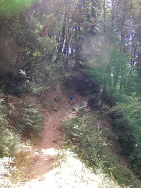 Exiting Springboard Trail and contemplating Steam Donkey, coming up.