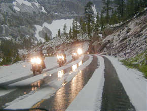 with new waterfalls everywhere, the road a mess of hail and