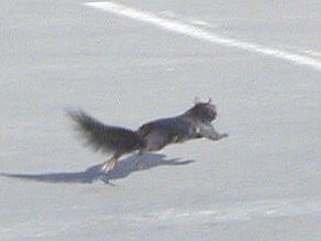 first squirrel, he drops to all four and races across the road in front of
