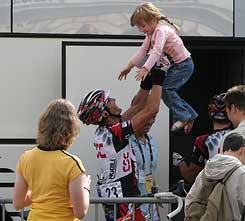 Ullrich made a surprise visit to the Lance/Discovery post-race party