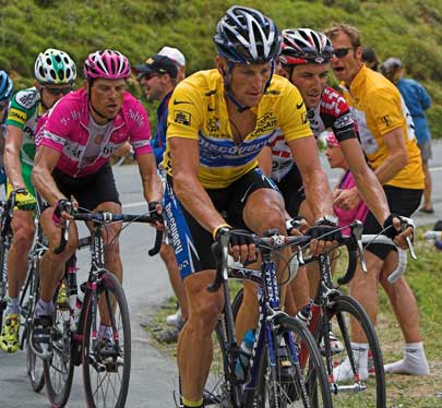 Not easily seen are Vinokourov, Leipheimer, Rasmussen & Heras.